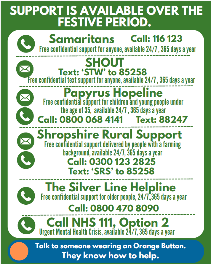 - Local & National Resources – Visit shropshire.gov.uk/suicideprevention